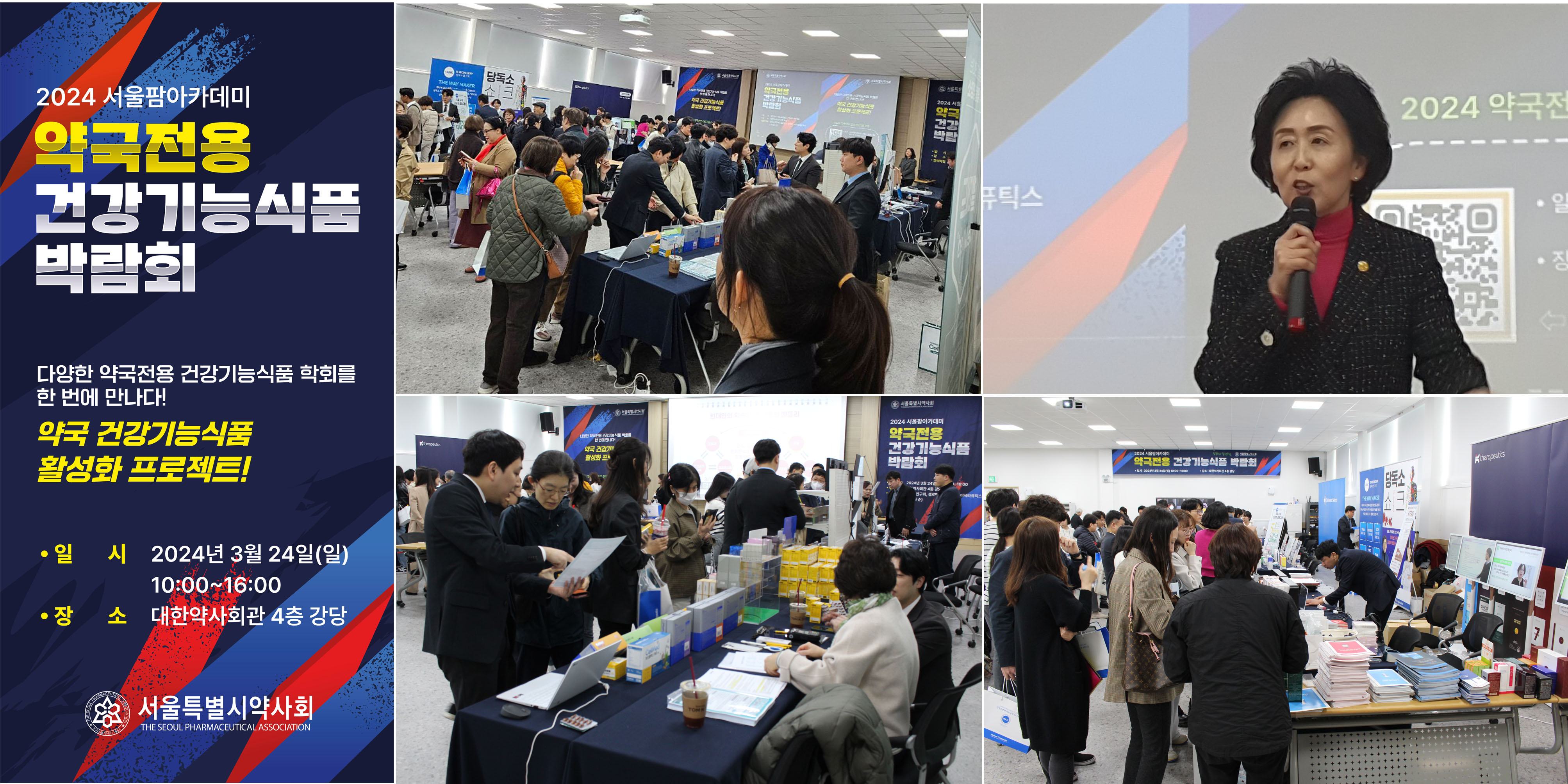 서울시약사회(회장 권영희) 교육위원회(부회장 황미경·본부장 안혜숙·위원장 강효진·손리홍)는 지난 24일 오전 10시부터 오후 4시까지 약사회관 4층 강당에서 ‘서울팜아카데미 약국전용 건강기능식품 박람회’를 개최했다.